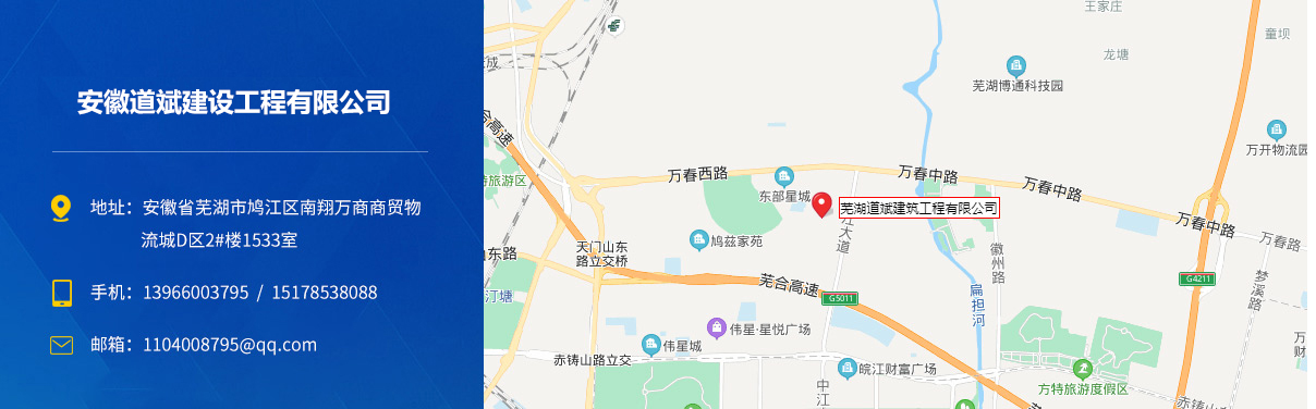 安徽道斌建設(shè)工程有限公司成立于2018年4月,主要從事工程施工、工程勞務(wù)、鋼結(jié)構(gòu)施工、市政公用施工,市政施工總承包貳級(jí)、地基基礎(chǔ)工程專(zhuān)業(yè)承包貳級(jí)、防水防腐保溫工程專(zhuān)業(yè)承包壹級(jí)、鋼結(jié)構(gòu)工程專(zhuān)業(yè)承包貳級(jí)、建筑裝修裝飾工程專(zhuān)業(yè)承包貳級(jí)、建筑工程施...